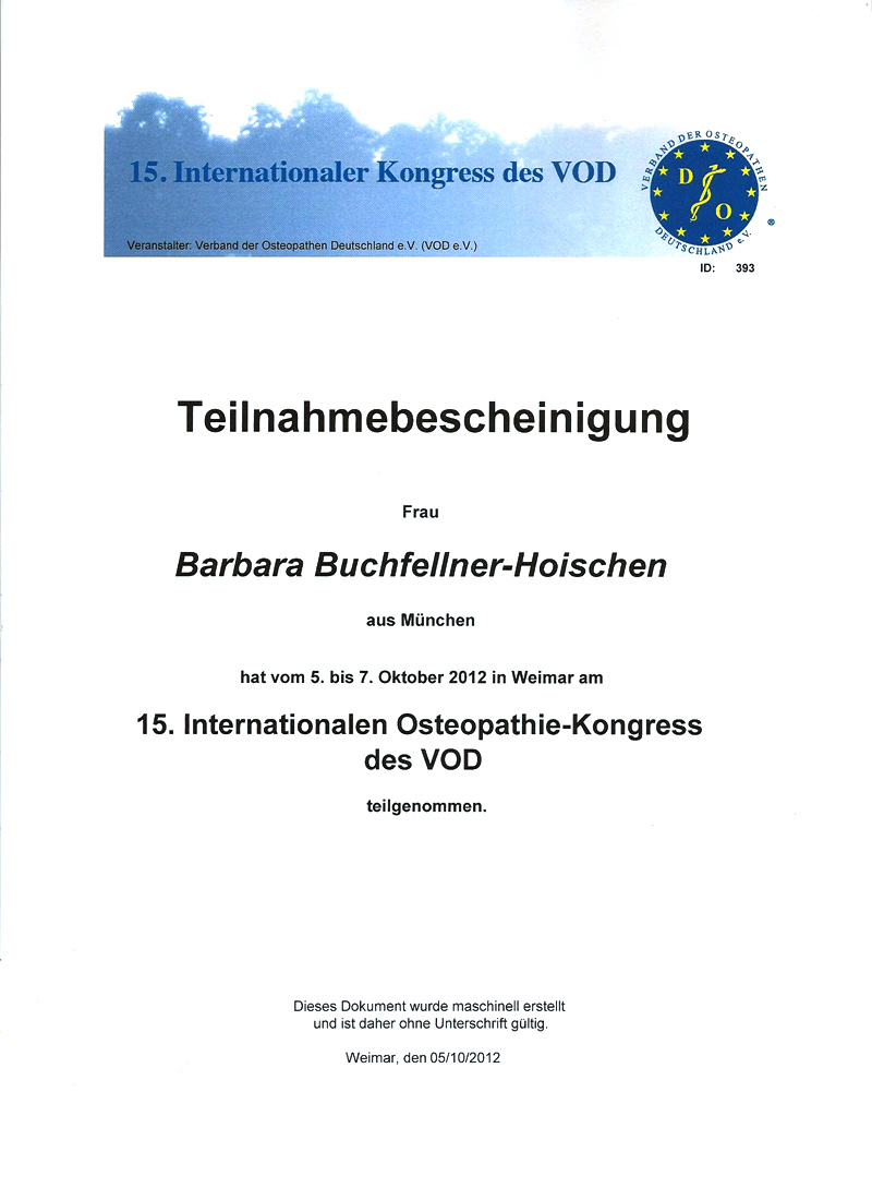 - Nov. 2007 Internationaler Kinderosteopathie-Kongress Berlin (Leitung OSD)